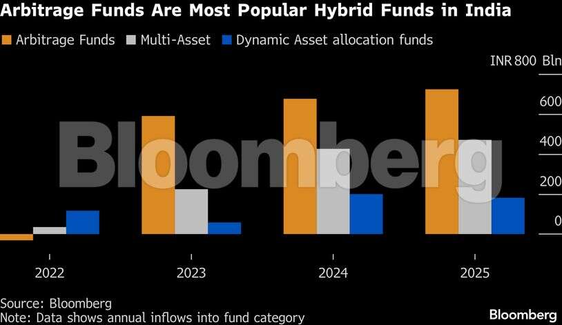 पिछले साल आर्बिट्राज फंडों ने भारत में तेजी से लोकप्रियता हासिल की, क्योंकि विदेशी निवेशक रिकॉर्ड संख्या में स्थानीय इक्विटी से बाहर निकल गए। प्रबंधन के तहत इसकी संपत्ति 2024 से 38% बढ़ गई, क्योंकि दुनिया की सबसे तेजी से बढ़ती प्रमुख अर्थव्यवस्था धीमी आय वृद्धि, अमेरिका के साथ व्यापार तनाव और एकल-अंक शेयर बाजार रिटर्न से जूझ रही है। निवेशकों का झुकाव उन फंडों की ओर हुआ, जो अनुकूल कर उपचार से लाभान्वित होते हैं लेकिन आम तौर पर ऋण फंडों की तुलना में कम उपज उत्पन्न करते हैं।