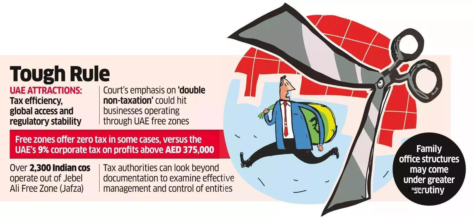 “दोहरे गैर-कराधान” पर अदालत की टिप्पणियां यूएई मुक्त क्षेत्रों के माध्यम से संचालित होने वाले व्यवसायों को भी प्रभावित कर सकती हैं, जो कुछ मामलों में शून्य कर की पेशकश जारी रखते हैं, जबकि यूएई के एईडी 375,000 से अधिक कर योग्य मुनाफे पर 9% कॉर्पोरेट टैक्स है। सलाहकारों का कहना है कि कर अधिकारी अब दस्तावेज़ीकरण से परे यह जांच कर सकते हैं कि किसी इकाई का “सिर और दिमाग”, या प्रभावी प्रबंधन और नियंत्रण कहाँ स्थित है, और क्या निवास के दावा किए गए अधिकार क्षेत्र में वास्तविक वाणिज्यिक पदार्थ है।